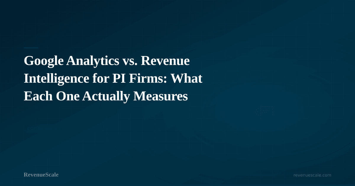 Google Analytics is installed on most law firm websites. It's free, it's powerful, and it generates an impressive volume of data about how visitors find and interact with your site. Revenue intelligence platforms are a newer category, purpose-built for PI firms that need to connect marketing spend to case outcomes. Both tools matter. But they measure entirely different things — and confusing one for the other leads to real gaps in how firms understand their marketing performance.