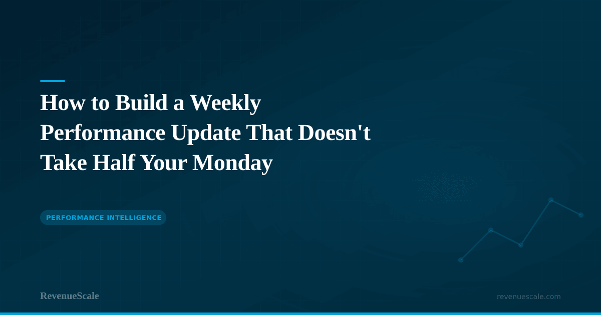 A weekly performance update that takes half your Monday morning is not a monitoring system — it is a documentation system that happens weekly. A useful weekly update takes 15 to 20 minutes because the data is already assembled, the format is standardized, and the purpose is to surface decisions, not produce a report. Build the infrastructure during the month, not Monday morning, and the update becomes the brief review it should be: five numbers, a vendor snapshot, and three action items that start the week pointed at the right problems.