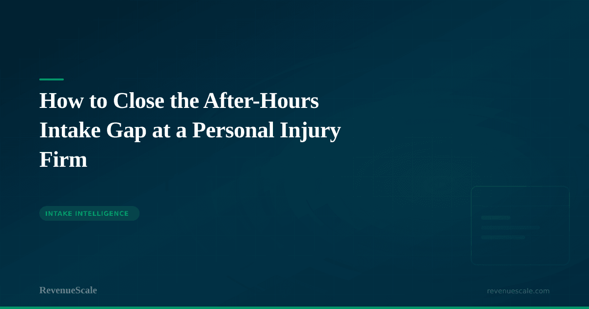 If you want to see how your after-hours intake performance breaks down by lead source—and what closing the gap would do to your cost-per-case across your full vendor portfolio—book a demo and we will walk you through exactly what that data looks like inside RevenueScale.