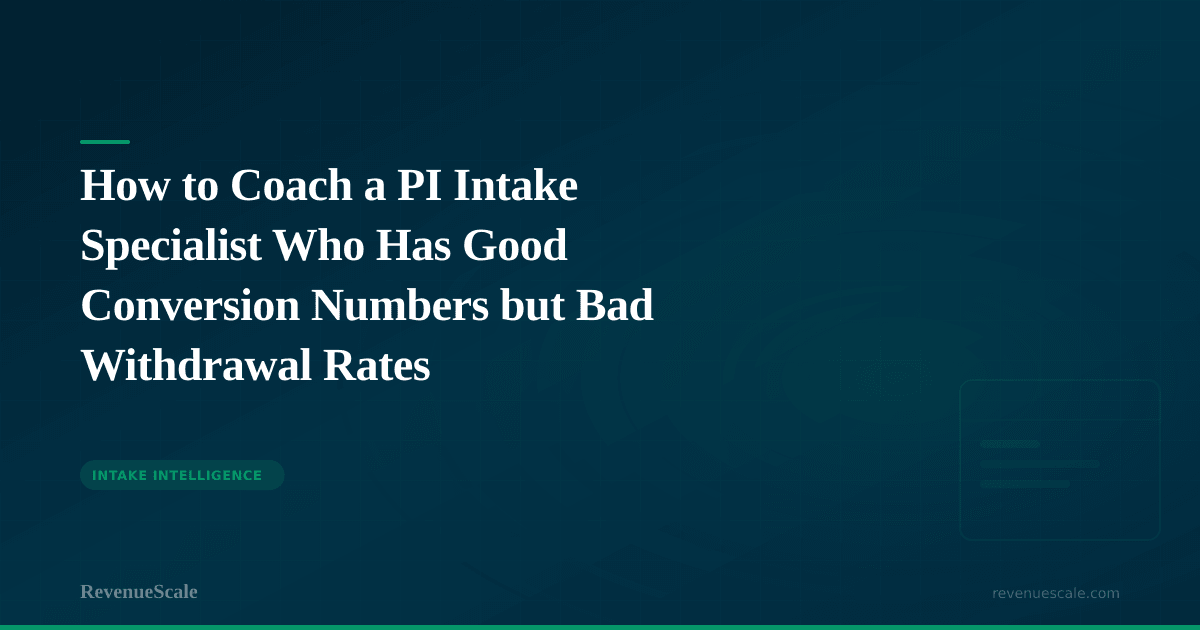 If you are managing a team of intake specialists and you are only looking at conversion rate, you are flying half-blind. Pull your withdrawal data by rep. Run the math on what those withdrawals cost. Then have the coaching conversation that actually changes outcomes — not about call counts, but about cases.