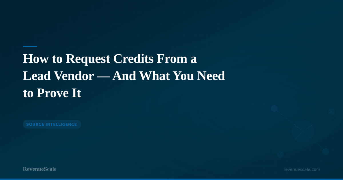 Bring credit history to every quarterly vendor review. Show the vendor the trend: how many credits were filed, what categories predominate, and whether the rejection rate is improving or getting worse. This data is the most concrete evidence of lead quality problems that exists — more concrete than any conversion rate discussion.