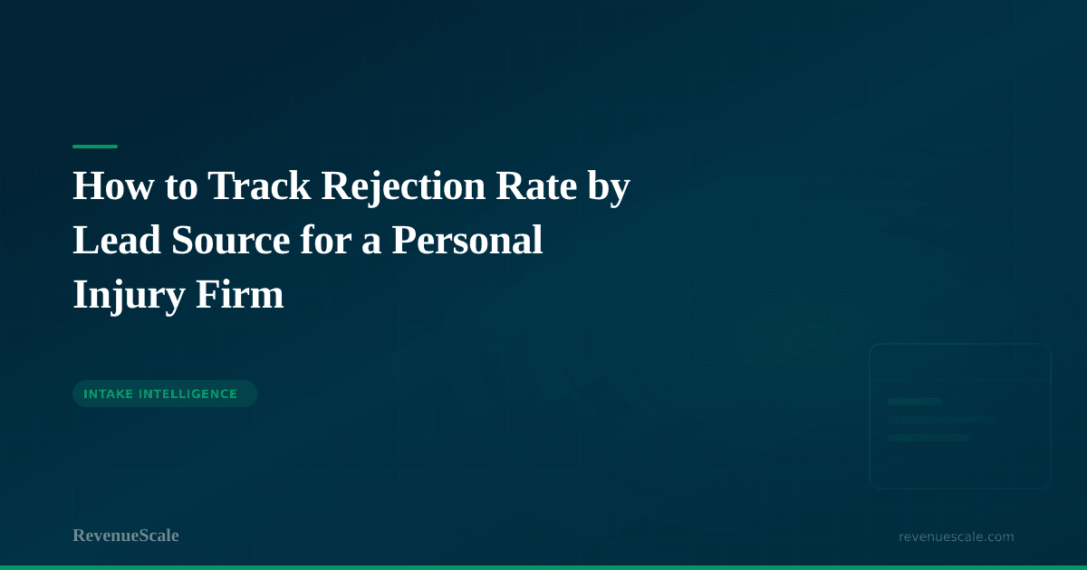 Rejection rate is not the most glamorous metric in your marketing stack. But for PI firms running multi-vendor lead portfolios, it is one of the most financially consequential ones. Track it by source, track the reasons behind it, and connect it to your cost data — and it will tell you more about your vendor performance than any number a vendor puts in their own monthly report. RevenueScale's intake performance dashboard surfaces rejection rate by source automatically, with reason-code breakdowns that turn data into actionable vendor conversations.