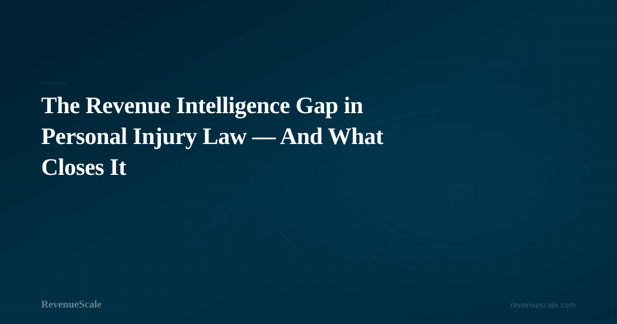 Related guide:For the complete category guide, see ourdefinitive guide to Revenue Intelligence for Personal Injury Law Firms — the four intelligence layers, the maturity model, and the 90-day path from spreadsheets to a connected revenue engine.