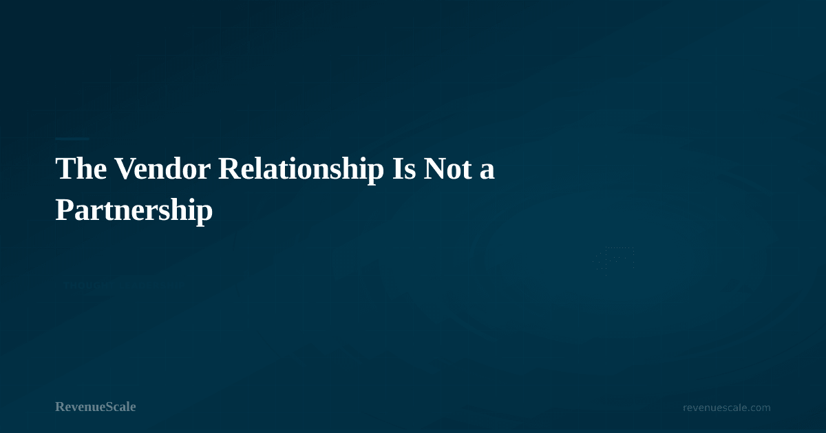 This is not a cynical argument against vendors. Good vendors exist, and many of them deliver real value. The argument is about the word itself — what it imports into the relationship, and how those imports create friction when it's time to have honest performance conversations.