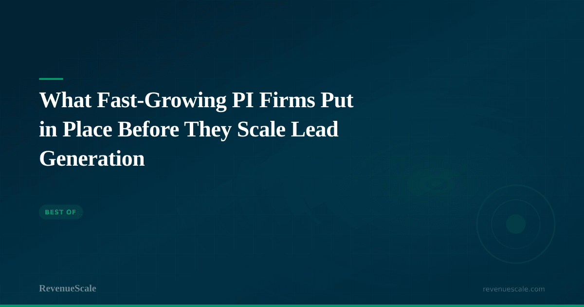 The fastest-growing PI firms we observe do not scale first and build infrastructure second. They build the infrastructure, confirm it is working at current scale, and then accelerate. This article covers what that infrastructure looks like — specifically the revenue intelligence components that determine whether scaling lead generation produces case volume or just spend.