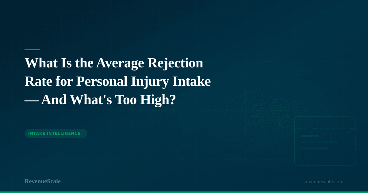 Across personal injury firms, rejection rates typically range from 15% to 45% of screened leads, with most mid-size firms landing in the 20% to 35% range.