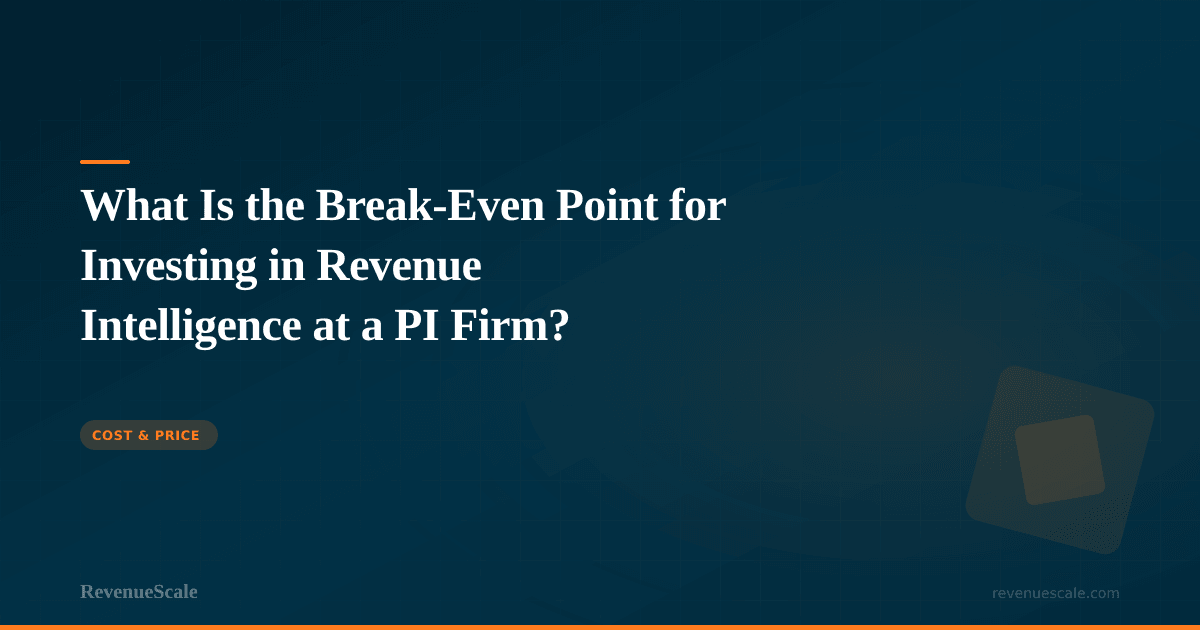 For a PI firm spending $100K or more per month on lead generation, the break-even point for revenue intelligence is typically 30 to 60 days. The math is driven primarily by vendor spend reallocation — moving budget from vendors that look good on cost-per-lead but underperform on cost-per-case to vendors that deliver better outcomes.