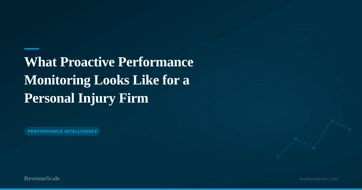 Proactive performance monitoring for a PI firm is not about watching more numbers — it's about watching the right numbers at the right frequency, and having a defined response when they move in the wrong direction. Daily for signals. Weekly for trends. Monthly for outcomes and strategy. With escalation protocols that turn data into decisions. That is how you move from reporting what happened to managing what happens.