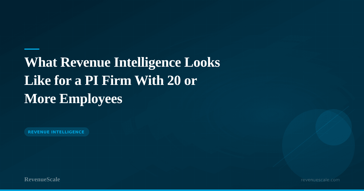 This article describes what revenue intelligence looks like — and what it needs to do — at the 20-plus employee stage of PI firm development. If your firm is at or approaching this size, the gaps described here are likely already showing up in your monthly reporting.