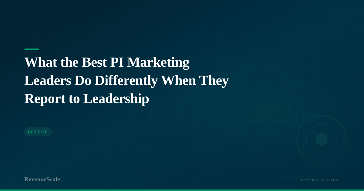 The most fundamental difference: the best PI marketing leaders report on results, not effort. They don't present on how many vendor calls they had, how many campaigns they managed, or how many report tabs they built. They present on signed cases, cost per case, and budget efficiency.
