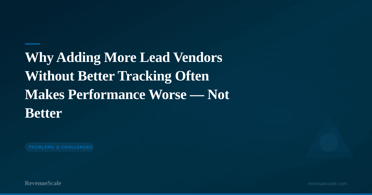 Noise is conflicting data, unclear attribution, inconsistent definitions, and delayed reporting. Noise tells you something happened, but not what it means. At five vendors without clean tracking, you already have a significant noise problem. At seven or eight vendors, noise can drown out signal entirely.
